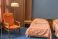 • A room in the Kosmos Hotel, built for the Olympic Games-80 in Moscow. A historic room with a view of the VDNKh at the Kosmos Hotel. Retro interior in the hotel. Beds in the Cosmos Hotel room.
