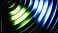 • 3d rendering. Abstract geometric background. Polished chrome texture with blue green gradient. Ribbed glass illuminated with neon light