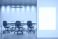 Pejzaże - Contemporary empty corporate meeting room with blank vertical banner at entrance, modern lighting... #1897043168