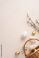 • Happy Easter vertical greeting featuring a gold polka dot egg and striped egg spilling from a wicker basket beside a pussywillow branch on a soft beige background for spring celebration