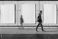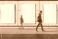 Pejzaże - Three blank posters hanging on a wall with a blurred figure walking past, ready for advertisement #1951718655