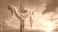 Pejzaże - Wooden Christian Cross with White Cloth at Sunrise as Symbol of Resurrection #1953124991