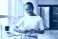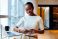 • Professional woman using a smartphone at desk with a laptop