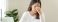 • Eye problem concept, fatigue asian young woman tired eyes, irritated rubbing eye dry relief vision pain after work on laptop computer, eye strain, hand holding glasses, suffer migraine, bad blurry