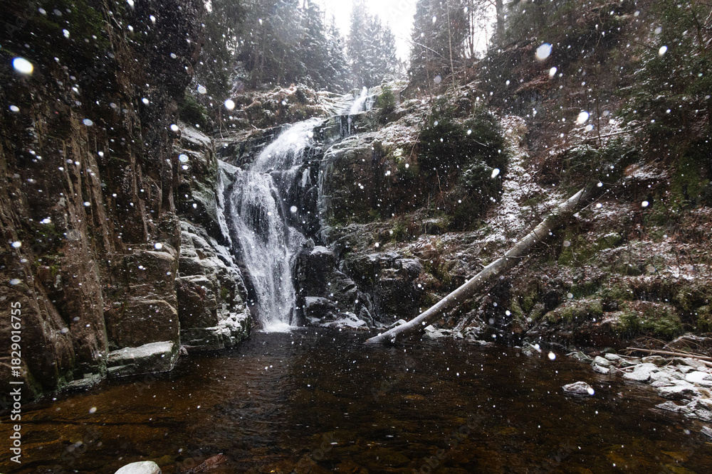 Kamień - Wodospad Kamieńczyka zimą w Karkonoskim Parku Narodowym - Szklarska Poręba. Najwyższy wodospad po... #1829016755
