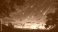 Bezchmurne niebo nocą. Nieboskłon pokrywają niezliczone gwiazdy, w centrum kadru widać jaśniejącą mgławicę.