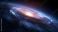 • Leuchtende Spiralgalaxie mit rosa und blauen Farbtönen vor sternenklarem Nachthimmel