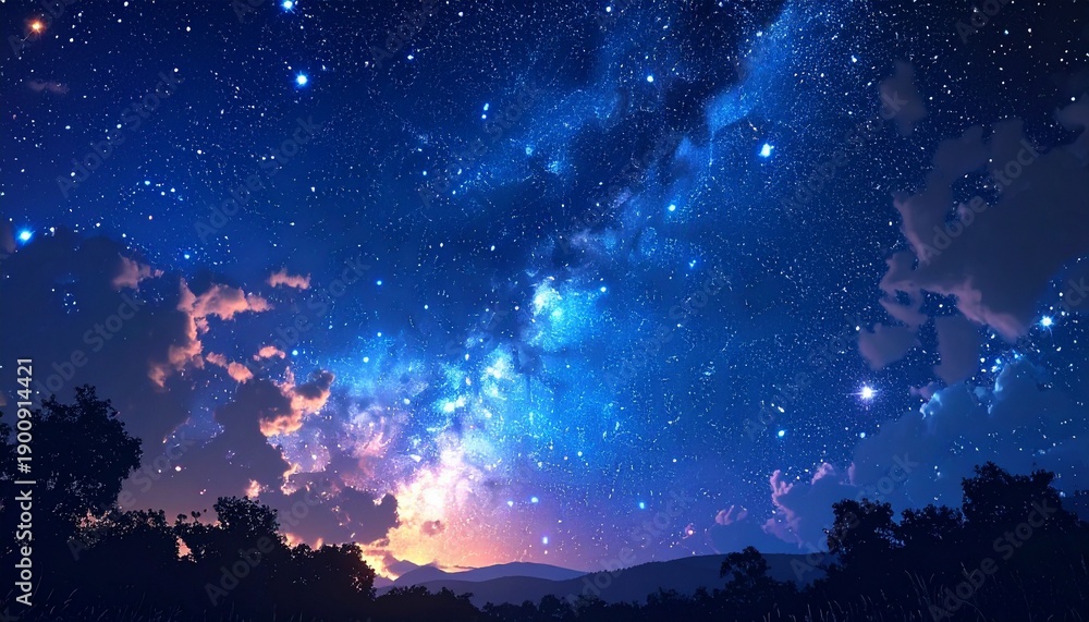 Kosmos - A breathtaking night sky with stars and a milky way over a mountainous landscape at dusk #1900914421