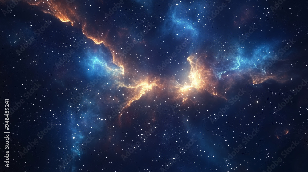 Sternenreicher Nachthimmel mit goldenen Nebelformationen, Starry night sky with golden nebula formations