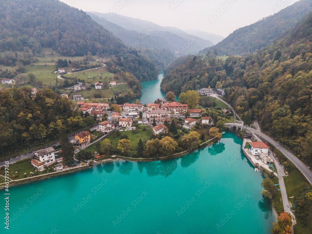 Mosty - Drone views of Most na Soči in Slovenia #467719788