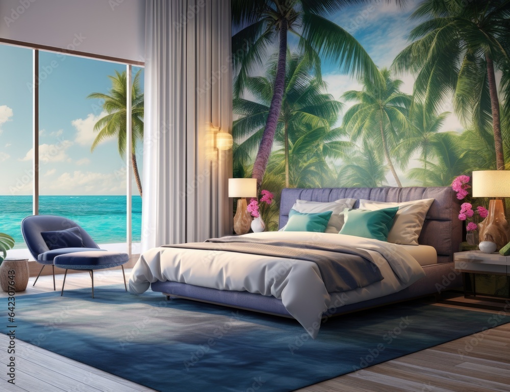 • Inside the most luxurious beachfront room next to the sea. You can see outside there is a clean white sand beach. the most beautiful nature There are coconut trees lined up. Sandy beach near clear blu