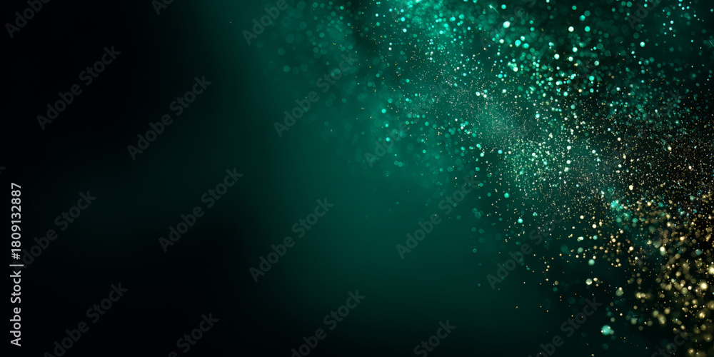 • Ciemnozielone tło z efektem złotego pyłu – abstrakcja glamour