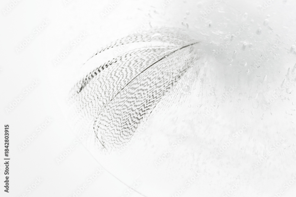Do Biura - Delikatne piórko zamrożone w lodzie, przedstawione na jasnym, niemal białym tle. Subtelne... #1842803915