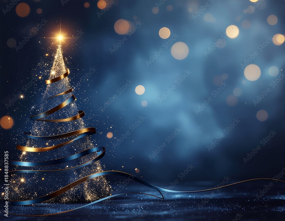 Do Biura - Niebieskie tło świąteczne z abstrakcyjną, artystyczną choinką i miejsce na tekst. Boże... #1848837585
