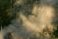 • Gęste kłęby siwego dymu w lesie podświetlone zachodzącym słońcem w czasie złotej godziny