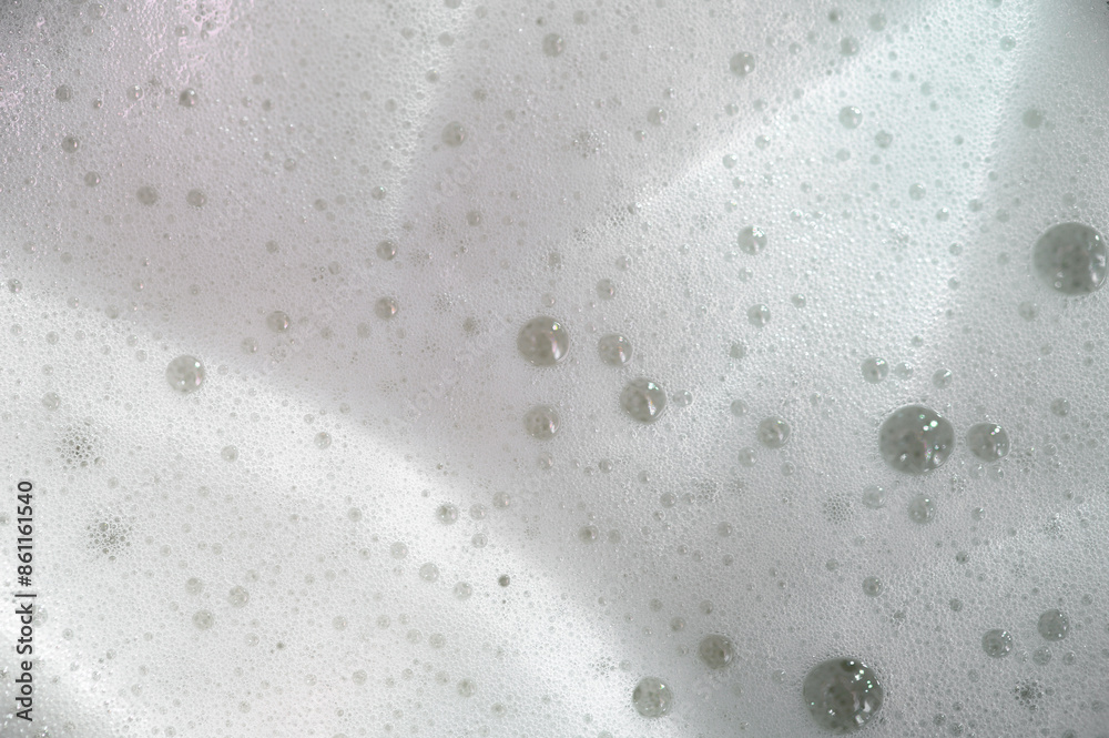 Do Biura - Biała tło, piana z bąbelkami oświetlana słońcem z bliska, tekstura #861161540