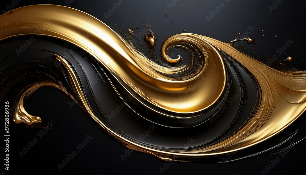 Do Biura - Złoty falujący płyn na czarnym tle. Abstrakcyjne czarno-złote tło. #972806936