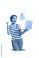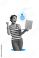 • Vertical photo collage of happy girl programmer hold laptop light bulb idea php cyberspace strategy isolated on painted background