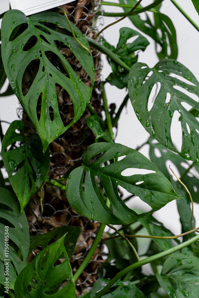 Do Sypialni - Monstera adansonii leaves with water drops close up #1750105348