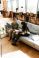 • Two female office workers smiling and sitting on a couch while holding documents and a notebook