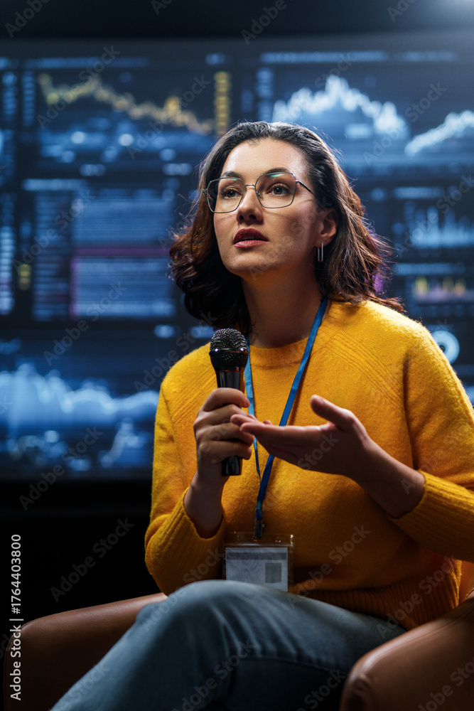 Do Sypialni - woman is giving a presentation at conference #1764403800