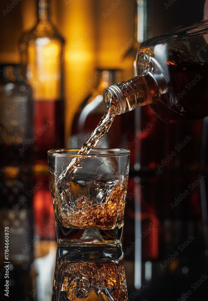 Do Sypialni - Pouring whiskey from a bottle into a glass. #1784660878