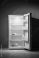 • An open, nearly empty fridge with a stark, minimalist aesthetic. Conceptually represents scarcity, diet, or need. Could be used for food, lifestyle or health related content.