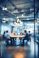 • Blurred business people meeting in office interior with space for business brainstorming background design
