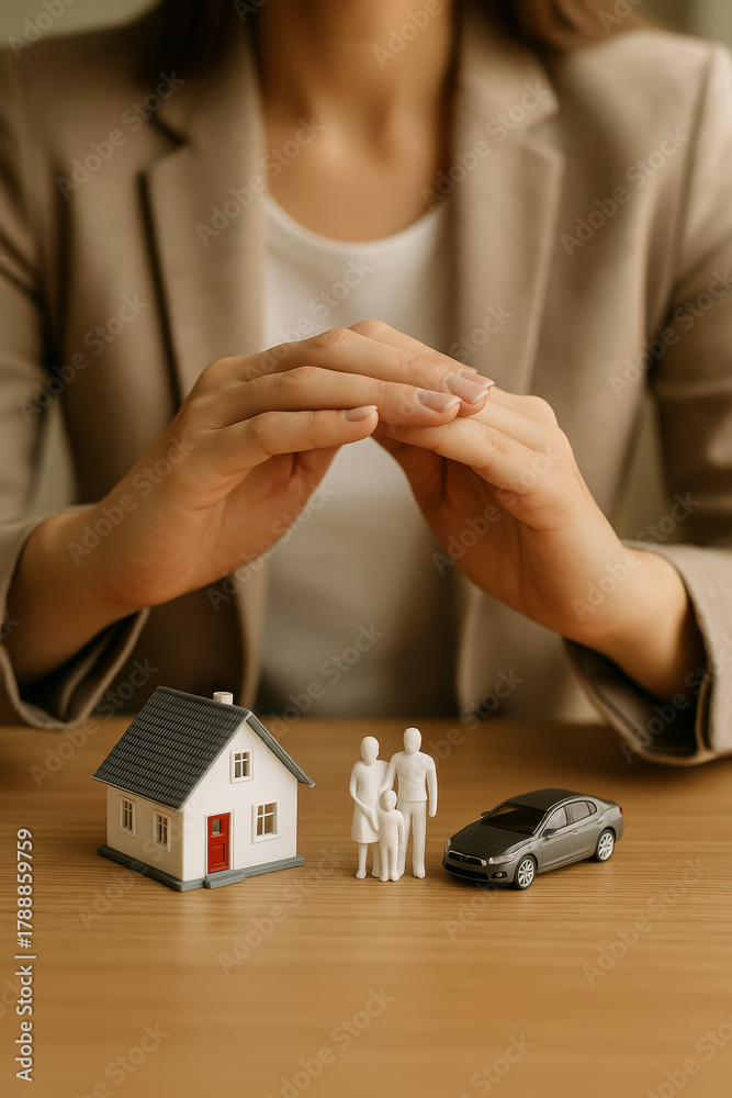 Do Sypialni - Concept of family protection with home and car insurance model #1788859759