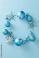 • Christmas wreath made of blue baubles and stars on pastel blue background