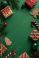 • Festive vertical scene with wrapped gifts, candy canes, gingerbread cookies, and pine branches on a green backdrop
