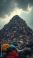 • A massive pile of discarded clothes creates a mountain of textile waste. This overwhelming heap highlights the severe problem of fast fashion pollution and its environmental impact.
