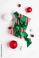 • Merry Christmas and Happy Holidays greeting card, frame, border, banner. New Year. Red green Christmas decoration, ornaments and gifts, presents on white background. Xmas holiday festive theme.
