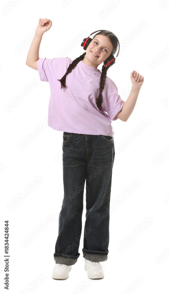 Do Sypialni - Cute girl in headphones on white background #1834424844