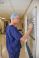 • Writing, surgeon or man in hospital with whiteboard, operation theater roster or schedule plan. Mature person, doctor and notice board in clinic with healthcare calendar, surgery timetable and admin.