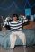 Do Sypialni - Teenage Black boy sitting on bed flexing arms and showing biceps, looking confidently at camera... #1842441944
