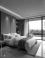 Do Sypialni - Modern bedroom with large bed, white linens, wooden wall, spacious terrace overlooking green... #1845891040