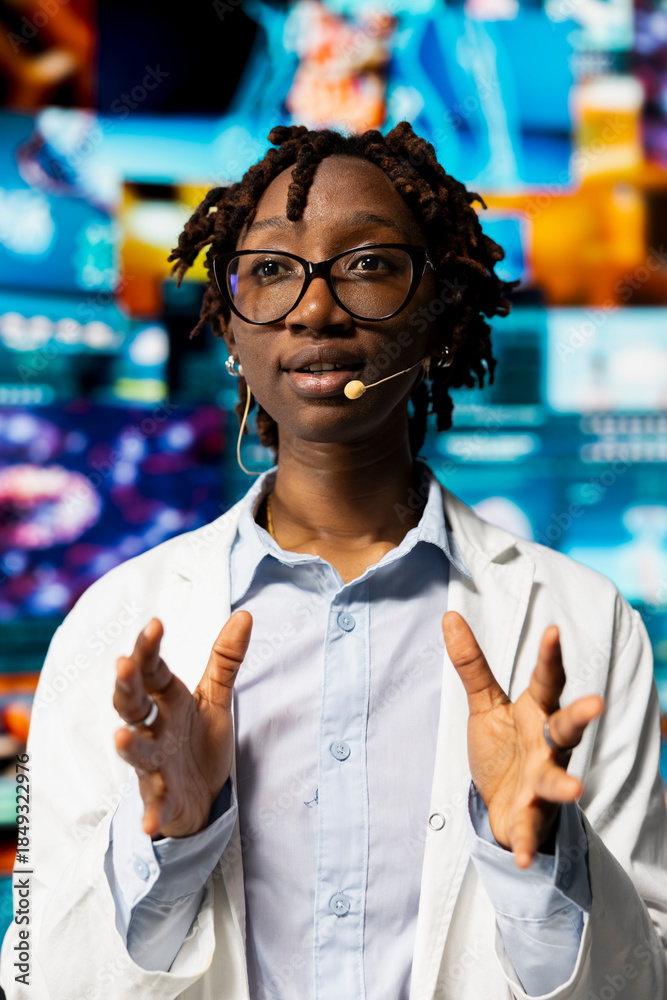 Do Sypialni - Healthcare researcher presenting disease prevention research medical data to audience at event.... #1849322976