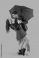 • Young lovely couple with umbrella on grey background. Valentine's Day celebration