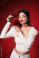 Do Sypialni - Beautiful young elegant woman with rose on red background #1890752425