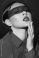 • Fashion model in red clothing poses with glossy lips and pink makeup wearing futuristic red translucent visor this beauty creative portrait expresses bold style mood.