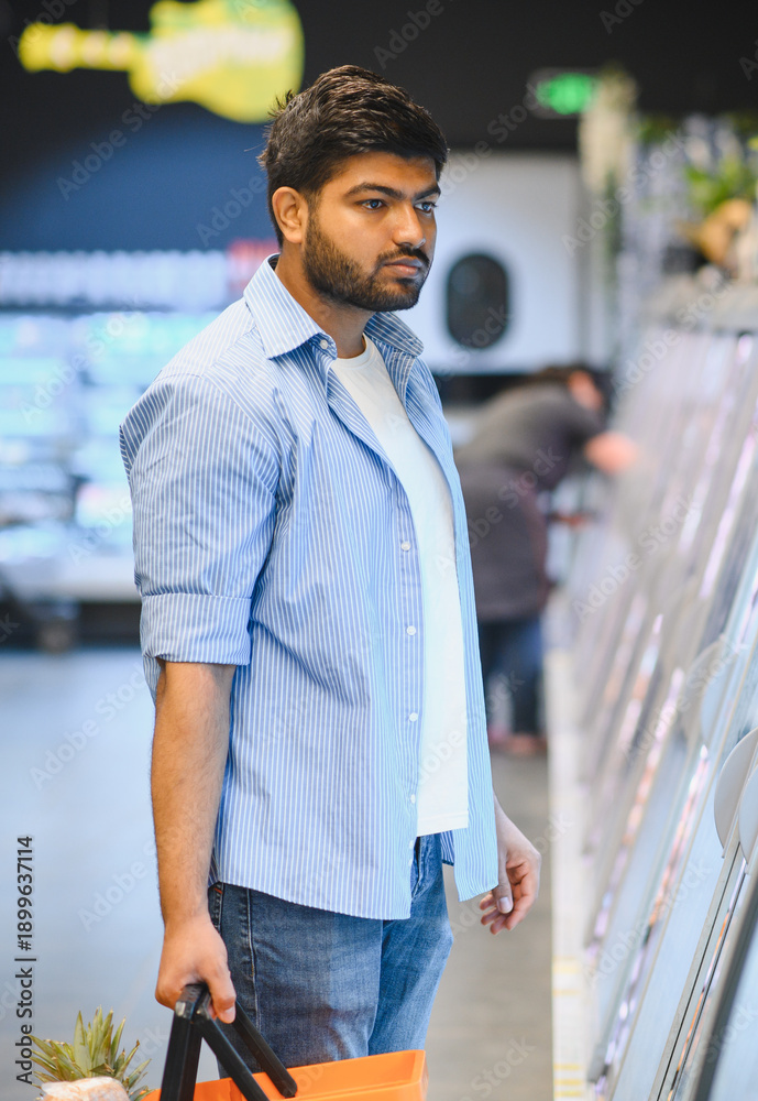 Do Sypialni - Customer choosing frozen food in supermarket refrigerator section #1899637114