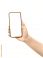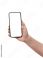 • Female hand with blank mobile phone on white background