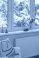 • Winter view from a cozy room with a window overlooking snow-covered trees