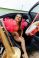Do Sypialni - Happy woman in vibrant carnival outfit getting out of a car while friends with musical... #1907307752