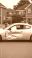 • Silver car with deployed airbag and dent on door parked in suburban neighborhood driveway