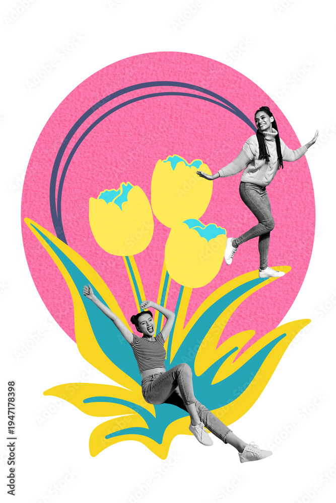 Do Sypialni - Exclusive image vertical photo collage of two happy girls friends dance together ukraine tulips... #1947178398