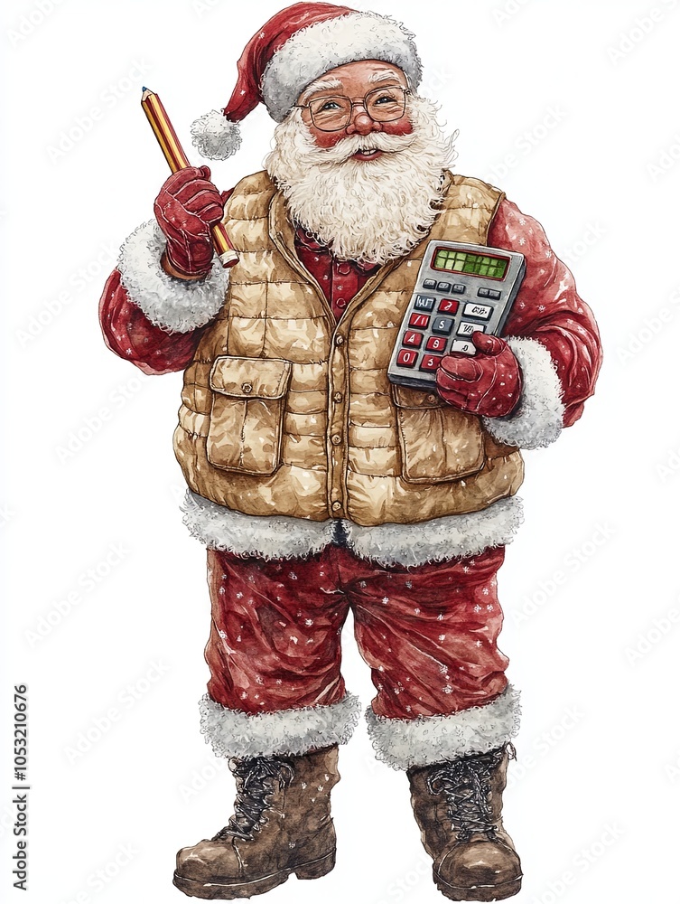 Do Biura Rachunkowego - Santa Claus calculating gifts with a calculator #1053210676