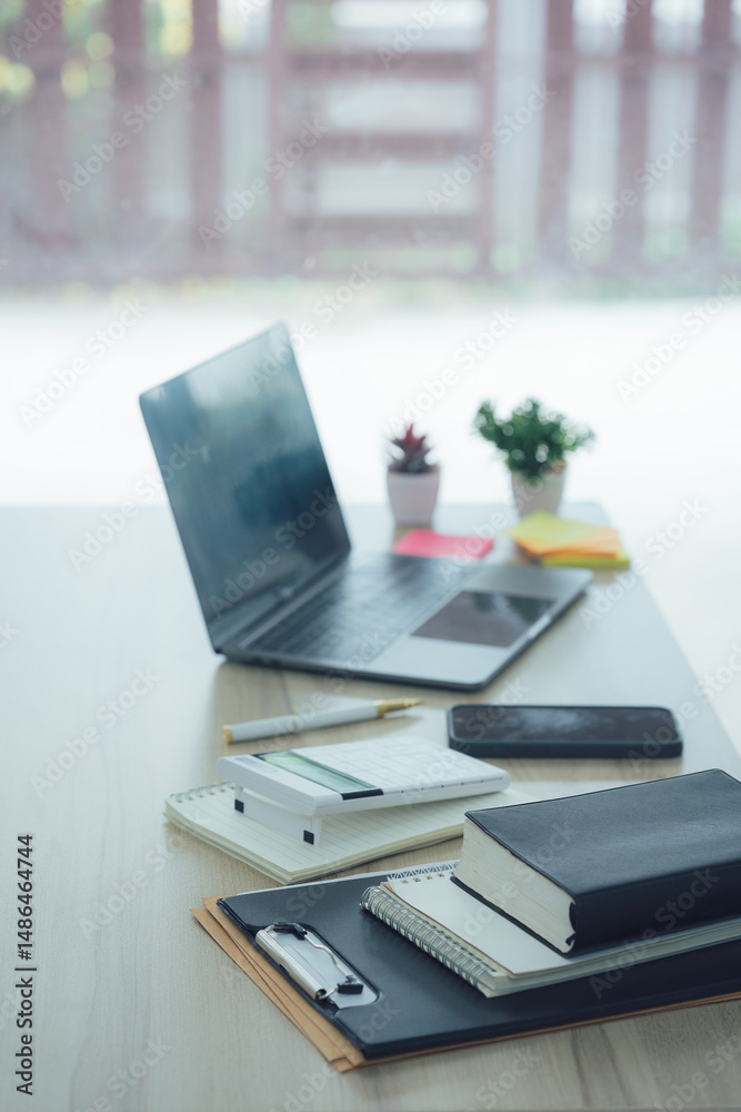 Do Biura Rachunkowego - Home Office Desk with Laptop and Supplies #1486464744