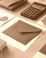 • Red envelope placed beside business documents and a calculator, symbolizing financial planning and festive gifting.